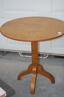 I found this last weekend at the yard sale in my Mom and Dad's neighborhood. It was $3! It has a little veneer problem on the top, but once painted with RustO's Strawflower, it was great! A little distressing, and called it good.